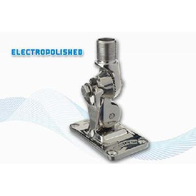 4-Way Ratchet Mount, Polished Stainless Steel Design with Clamp, for Deck or Bulkhead.